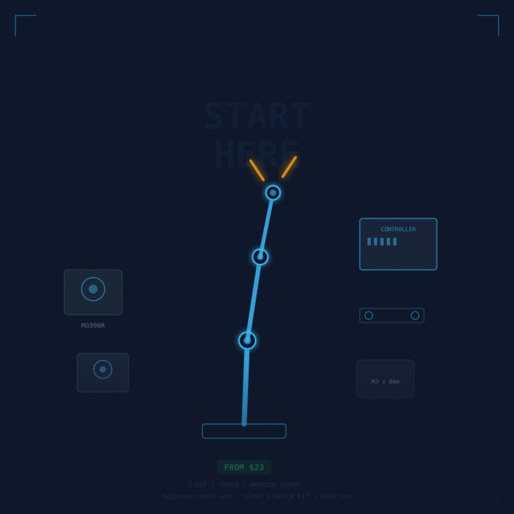 Our beginner robot arm kits are designed to be assembled and running in 1–3 hours with no prior robotics experience. Starting at $23 for the 4-DOF STEM kit, these kits use lower-voltage SG90 micro servos (safe at 5V), include all hardware and sample Arduino code, and are suitable for ages 10 and up. The perfect first step into real robotics hardware.