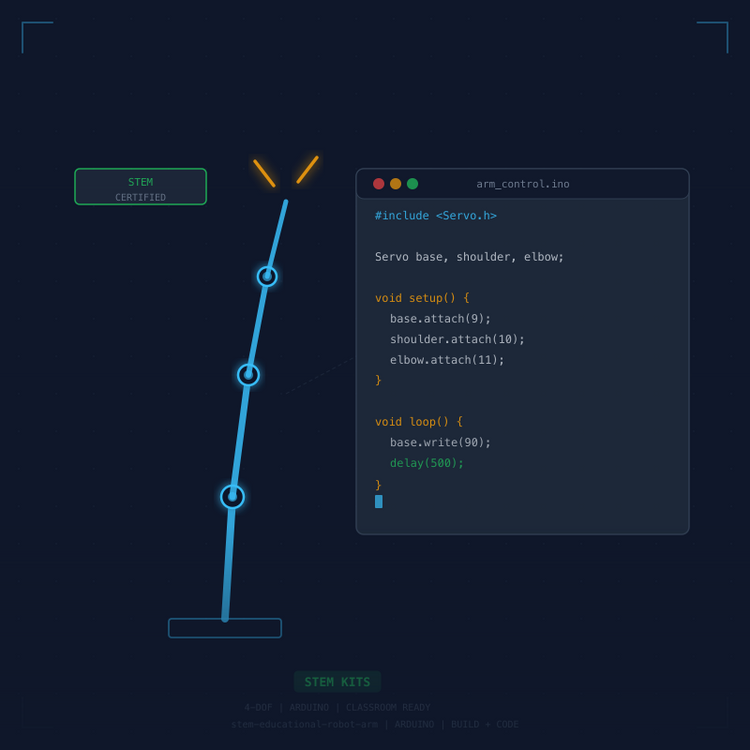 Building and programming a robot arm kit teaches mechanical engineering (linkages, joints, torque), electronics (servo PWM signals, power supplies, wiring), and computer science (Arduino C++, control loops, conditional logic). Unlike single-discipline STEM kits, a robot arm integrates all three in a tangible, demonstrable result. Students who build a robot arm can show it to anyone — parents, teachers, judges at a science fair — and get immediate, visible feedback on their work.